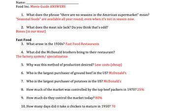FJE - Read Answer Key To Food Inc Packet Audio CD Gutenberg
